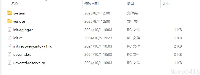 根目录的任何结尾为rc的文件(ueventd.rc字样的可以不用复制),system,vendor文件夹到新的文件夹