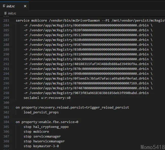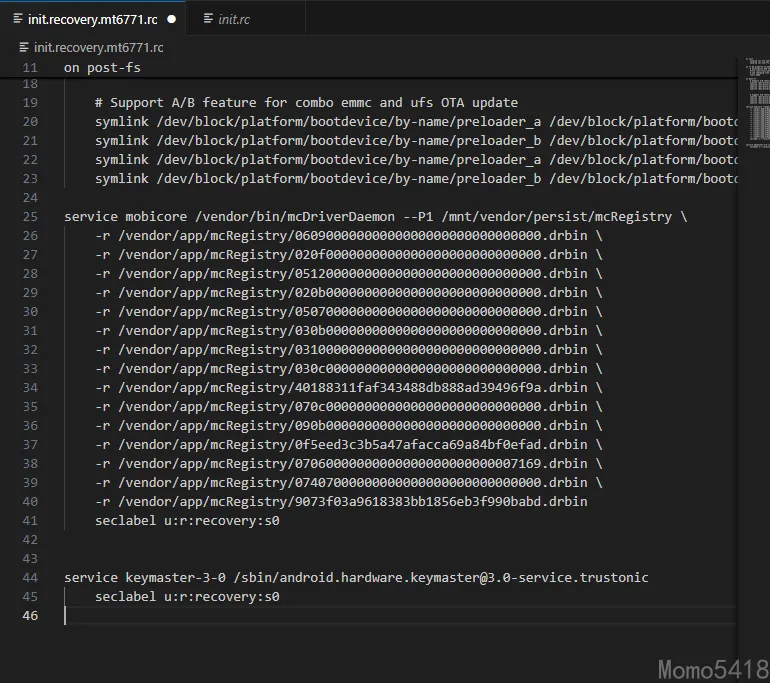方法二:解包原厂rec镜像,打开init.recovery.mt6771.rc init.recovery.platform.rc init.recovery.svc.rc之类的文件